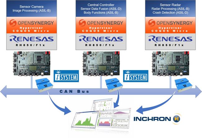 Automotive embedded systems demand the highest degree of reliability and safety in long-term operation. At the same time, the development of these often very complex systems is also subject to high costs and pressure to meet customer’s delivery deadline. At the Embedded World 2017, the companies INCHRON, iSYSTEM, OpenSynergy and Renesas Elecronics Europe presented a demonstrator for car driver assistance systems that enables the fulfilment of all these requirements through a consistent use of state of the art platforms, software technologies and development tools.